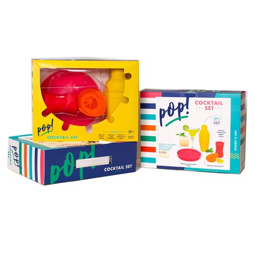 Made from silicone this cocktail shaker set is perfect for making Margaritas at the beach on the patio or by the pool. Set includes 12 oz Shaker with lid Citrus Juicer Salt Rimmer and measured Jigger.