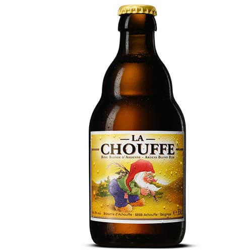 The Elves of the Valley of the Fairies are particularly appreciative of this golden beer. CHOUFFE with its slightly hopped taste fresh coriander notes and fruity accents seems to be the beverage that inspired their joie de vivre. At least what these mischievous beings recount whenever the desire to quench their thirst is felt. From generation to generation they have jealously guarded their secret. Until the day or to seal their friendship with men they Among the legends of this marvelous region of the Belgian Ardennes the history of LA CHOUFFE is the one that deserves to be the most widely shared. 8% ABV