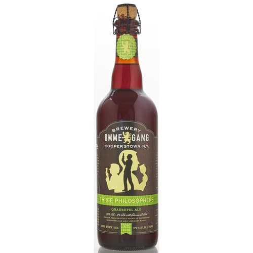 Three Philosophers is a unique blend of a Belgian-style dark ale and Liefmans Kriek an authentic cherry ale from Belgium. Cherry chestnut in color it's opaque but not cloudy with full carbonation topped by a smooth tan head. Flavors and aromas of roasted malt molasses and brown sugar dark fruits brandied raisins and chocolate Three Philosophers have notable sweetness with low hop bitterness. The mid-palate shows a soft malt center which gives way to a dry warm wine-like finish.The complexity of this beer makes it a good candidate for aging gracefully as spicy sherry and port notes should intensify. 9.7% ABV When simply pairing this it is important to keep in mind that you need a dish that is going to stand up to the big alcohol rich malt and subtle cherry. Think hearty; stews fatty meats gooey stinky cheese and you cannot go wrong. Try this beer as a marinade or in a sauce. In a marinade the alcohol naturally breaks down the proteins in the meat tenderizing it wh