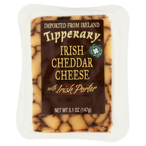 Aged Irish Cheddar permeated with dark Porter that results in a strikingly beautiful brown mosaic and rich toasty flavor with hints of chocolate hops. Try melted on a burger or simply paired with its namesake Porter!