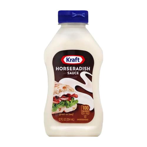 Kraft Horseradish Sauce offers a unique classic taste that the entire household is sure to love. This creamy horseradish sauce has a spicy rejuvenating taste and the spreadable texture allows for easy application. This classic horseradish sauce is great on beef and you can use it to make a dressing for salad or a creamy dipping sauce. The squeezable 12 fluid ounce bottle lets you apply just the right amount of sauce to a sandwich or wrap without having to reach for a utensil. For best results place the plastic bottle upside down when it's nearly empty. Packaged in a resealable bottle to help lock in flavor.