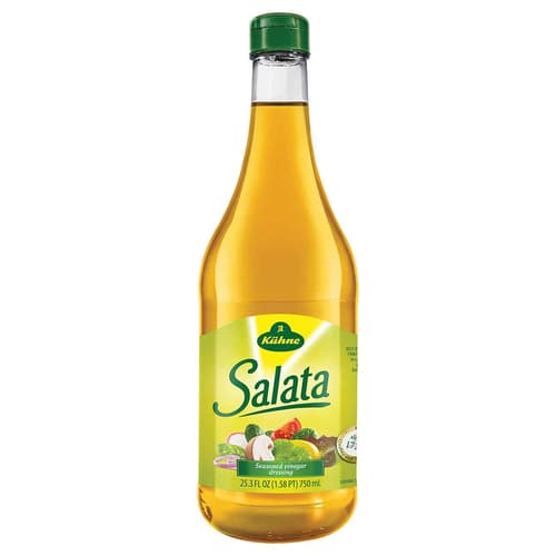mADE IN hAMBURG BY kUHNE sALATA IS A SEASONED VINEGAR DRESSING. a QUICK AND CONVENIENT WAY OF GIVING SALADS THAT FRESH FLAVOR OF HERBS AND SPICES. sIMPLY POUR OVER A SALAD GREENS AND/OR OVER FRESH SLICED VEGETABLES. pARTICULARLY DELICIOUS OVER SWEET CORN ENDIVES TOMATOES CUCUMBERS AND CABBAGE SALADS.