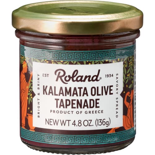 ROLAND KALAMATA OLIVE SPREAD IS A TAPENADE MADE FROM GREEK KALAMATA OLIVES EXTRA-VIRGIN OLIVE OIL WILD CAPERS GARLIC AND OREGANO. THIS DISTINCTIVE SPREAD IS A DEEP BROWN/BLACK COLOR WITH FLECKS OF OLIVES AND CAPERS THE TASTE IS SHARP AND SAVORY.