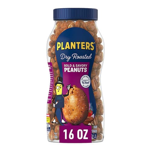 The smoky spicy taste of PLANTERS Bold & Savory Peanuts proves that protein snacking doesnt need to be boring! Dry roasted with a blend of spices these peanuts have a bold nutty flavor that stands out from regular peanuts. And with 16 servings per jar there are plenty of Bold & Savory Peanuts to share with adventurous friends.