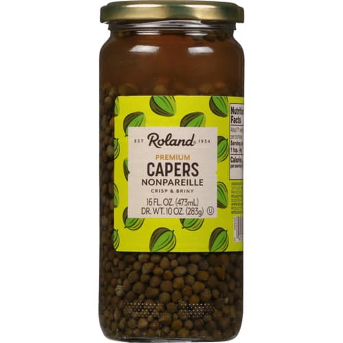 ROLAND NONPAREILLE CAPERS ARE THE SMALLER OF THE COMMERCIALLY USED CAPERS MEASURING 3-5 MM IN DIAMETER. tHEY ARE GREEN/GRAY IN COLOR. tHE CAPER IS THE FLOWER BUD OF A LOW GROWING BUSH FOUND IN MEDITERRANEAN COUNTRIES. IT IS CURED IN BRINE AND PACKED IN VINEGAR.