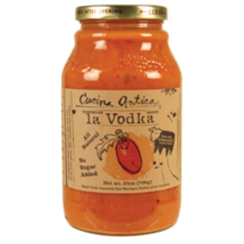 Cucina Antica La Vodka is made with imported Italian San Marzano tomatoes tomatoes heavy cream fresh onions Pecorino Romano cheese vodka extra virgin olive oil salt basil white pepper and black pepper. Cucina Antica pasta sauces have no preservatives no added sugar no added water and are made with real tomatoes - not paste.
