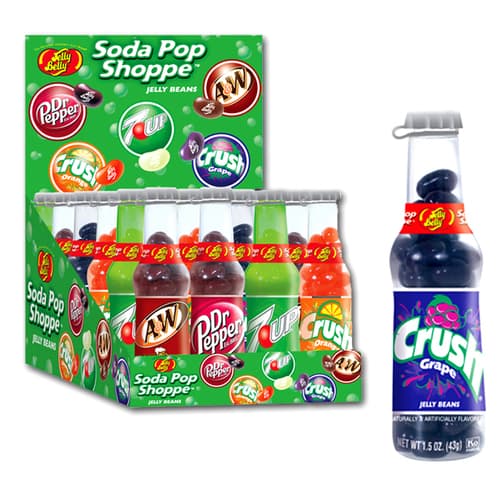 fEELING THIRSTY? pOP OPEN A BOTTLE FROM jELLY bELLYS sODA pOP sHOPPER! fIVE OF THE FLAVORS FROM OUR AUTHENTIC SOFT DRINK LINE HAVE BEEN PLACED IN THEIR OWN LABELED 1.5 OZ BOTTLES.