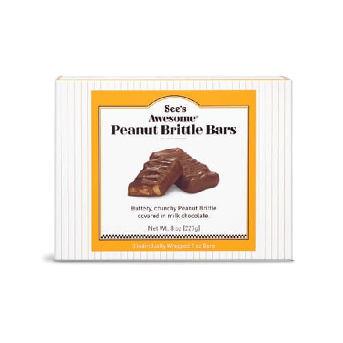 A satisfying combination of our famous old-fashioned crunchy peanut brittle and rich creamy milk chocolate. The perfect snack and party treat. Includes 8 individually wrapped 1 oz. bars per box.