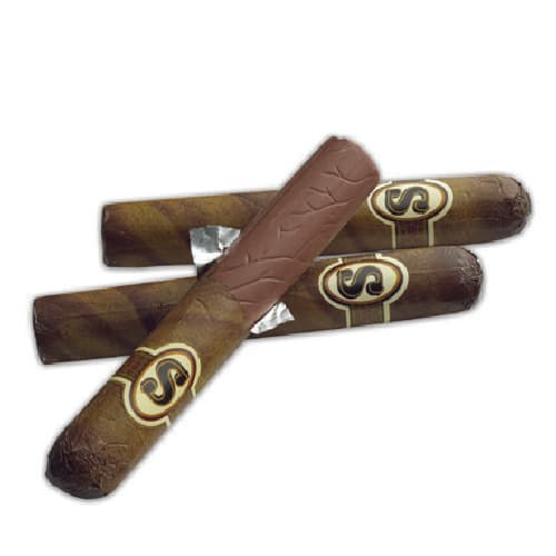 A fun tasty and playful way to celebrate. They may look like the real thing but these unique treats are made entirely of Sees milk chocolate! Each comes wrapped with brown foil for an authentic look complete with a Seegar band. 3 per box.