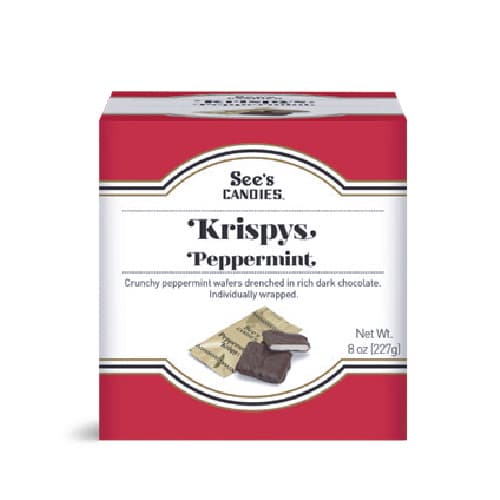 Crispy wafer-thin squares unlike anything else. Featuring refreshing mint drenched in See's rich dark chocolate. Individually wrapped for on-the-go snacking. Approximately 30 per box.