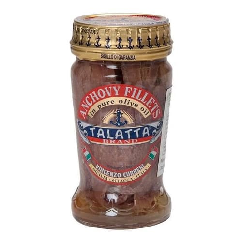THESE TALAATTA ITALIAN ANCHOVY FILLETS IN PURE OLIVE OIL ARE FRESH OFF THE MEDITERRANEAN FISHING BOATS WITHIN 24 HOURS OF CAPTURE THEY ARE HAND-CLEANED AND WASNED IN BRINE. HIGN IN OMEGA-3 FATTY ACIDS ANCHOVIES ARE A TASTY PART OF A HEART-HEALTHY DIET.