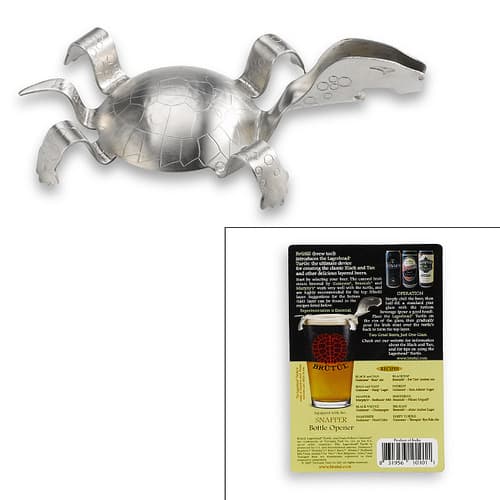 TURTLE BEER LAYERING TOOL WITH BOTTLE OPENER - MATERIAL -- STAINLESS STEEL-- -- DOUBLES AS A BOTTLE OPENER- -TURTLE DESIGN COMFORTABLE SITS OVER PINT GLASSES -PERFECT FOR CREATING BLACK & TANS SNAKEBITES AND OTHER LAYERED BEERS