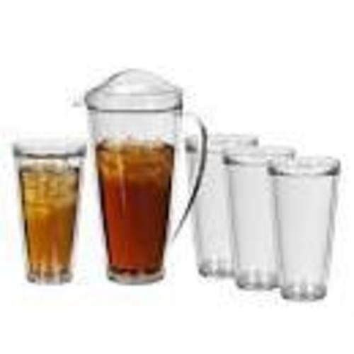 SET INCLUDES: ONE 70-OUNCE PITCHER FOUR 22- OZ TUMBLERS. CONTAINS NO BPA. MADE IN USA.