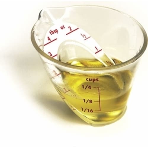 IT'S EASIER THAN EVER TO MEASURE SMALL AMOUNTS OF LIQUID. NO MORE FIDDLING WITH HARD TO HANDLE MEASURING SPOONS. THIS OXO GOOD GRIPS MINI MEASURING CUP FEATURES AN ANGLED SURFACE THAT LETS YOU EASILY READ MEASUREMENT MARKINGS BY LOOKING STRAIGHT DOWN AT THE CUP INSTEAD OF TRYING TO ESTIMATE HOW MUCH YOU POUR BY MEASUREMENT MARKINGS ON THE SIDE.