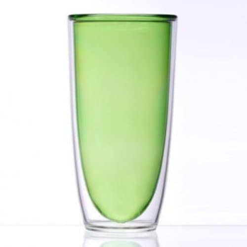 DOUBLE WALL INSULATION KEEPS DRINKS CHILLED LONGER. CLEAR OUTER WALL WITH CHOICE OF TRANLUCENT COLOR INNER WALL.