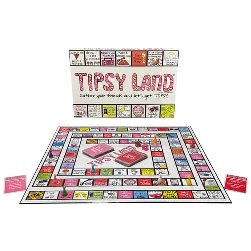 Get ready to stumble laugh and sip your way through the wildest party board game you've ever played! Tipsy Land is the hilarious booze-fueled adventure that turns into a night to remember.Inspired by classic board games (with an adult twist) Tipsy Land takes players on a journey filled with outrageous challenges dares drinking and unpredictable detours. Whether you're pre-gaming partying or just looking to break the ice this game guarantees laughs bold moves and a few blurred memories.