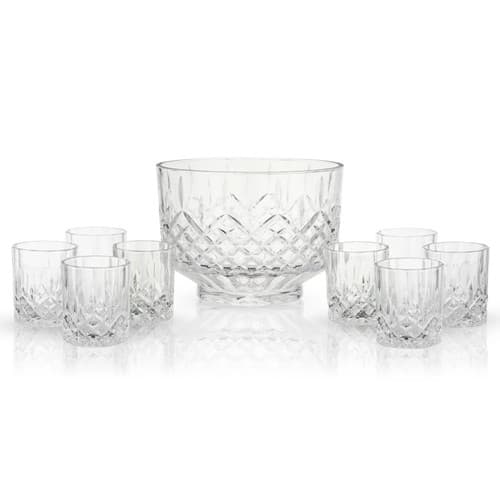 Viski Admiral Crystal Punch Bowl and Tumbler Set
