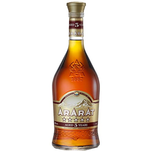 Five-year-old Five Stars Ararat brandy is probably the most popular in the range. It has a distinctive aroma of ripe and juicy plums notes of sweet Armenian peach and a thin delicate taste with a hint of black currant. 40% ABV Bright and generous Five Stars Ararat brandy will fill your celebrations and friendly get-togethers with energy and joy. According to Biblical tradition Ararat is the cradle of civilisation and where viniculture began. On visiting Armenia the British government official James Bryce said: If a man really first set foot on this earth then a more spectacular centre of the universe could not be imagined.