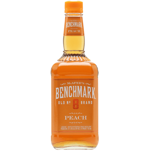 Benchmark Peach bourbon is a flavored version of the value bourbon named for McAfee out of the acclaimed Buffalo Trace Distillery. 35% ABV 70 Proof McAfee's Benchmark #8 bourbon is one of the many releases from the Buffalo Trace Distillery. This particular expression they call their rye recipe which indicates that in addition to the 50%+ corn in the grain bill (required to be called a bourbon) there is a healthy dose of rye as opposed to wheat or barley.