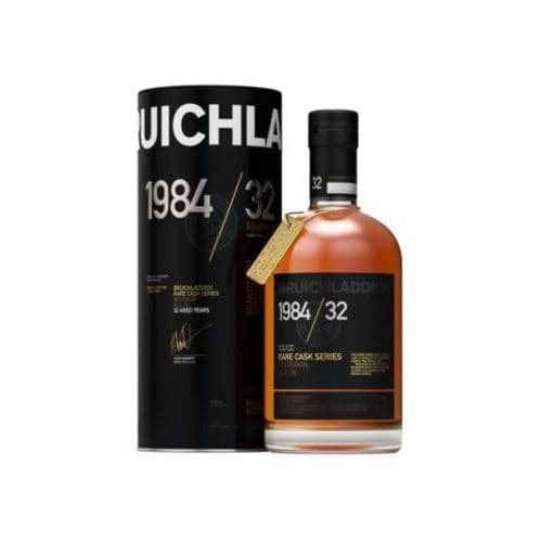 Unpeated Islay Single Malt Whisky. The Rare Cask Series from Bruichladdich Distillery celebrates a selection of unique casks from a lost generation. The 1984/32 celebrates the last 12 casks from this vintage year aged for 32 years. This limited-edition product is matured 100% in bourbon barrels hand-selected by three generations of Bruichladdich Master Distillers.