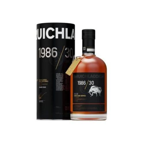 Unpeated Islay Single Malt Whisky. The Rare Cask Series from Bruichladdich Distillery celebrates a selection of unique casks from a lost generation. The 1986/30 celebrates the last seven casks from this vintage year aged for 30 years. This limited-edition product is matured in oloroso and Pedro Ximinez sherry casks hand-selected by three generations of Bruichladdich Master Distillers.