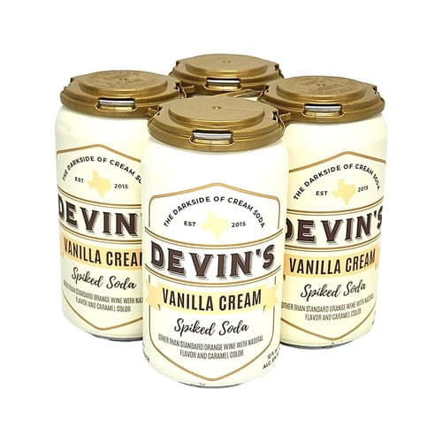 Devin's Spiked Vanilla Cream has rich notes of vanilla. It is reminiscent of a classic ice cream soda... just with a kick. Welcome to the dark side of cream soda. 8% ABV wine-based. Made with pure cane sugar and no high fructose corn syrup no malt or barley.