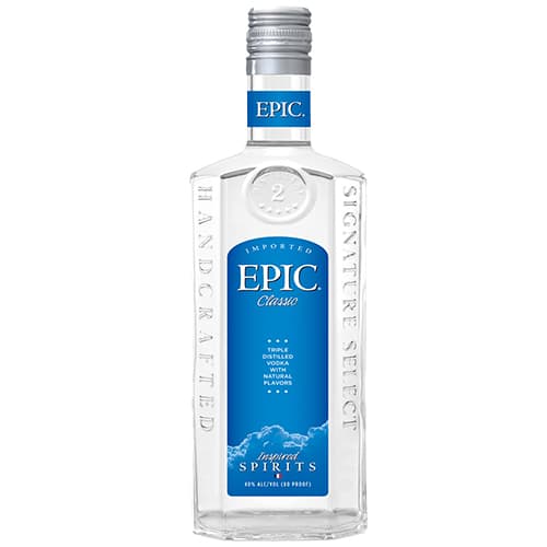 Epic Vodka is a French product made from a base of wheat-grain grown in the Champagne region. It was first launched by Sazerac in 2013 for what they describe as epic times. 40% ABV 80 Proof