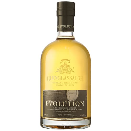 Glenglassaugh Evolution is created by maturing the whiskey in a unique combination of the finest hand-picked ex-Tennessee first-fill whiskey barrels. This expression shows great depth of character and finesse a harmonious combination of whiskey and oak. Bottled at 50% natural color and non-chill filtered Evolution represents the heart of Glenglassaugh's distinctive personality and indeed the landscape in which it is set. 50% ABV Tasting Notes: Color: Crisp harvest gold. Nose: A luscious syrupy combination of sweet barley delicate pineapple and waves of soft buttery vanilla. Deeper oak spices and caramelized pear develop and warm the nose. Palate: Robust white peppery oak floods through crisp green apple and freshly cracked barley. A gently salted caramel emerges alongside hints of ripe banana and fruit salad syrup. Finish: A vibrant combination of classic oak spices and delicate soft fruits surrounded by fragrant waves of vanilla pod.