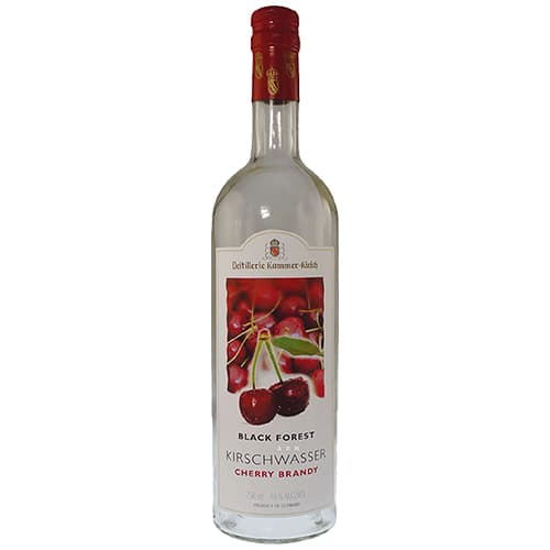 Black Forest Kammer Kirschwasser is distilled from 20 pounds of carefully selected cherries picked in Germany's the Black Forest. It has been praised by connoisseurs the world over for its exquisite taste and delicate cherry flavor. Black Forest Kirschwasser makes a clear alternative to cognac and another premium after dinner drinks and is best enjoyed in a snifter. It can also greatly enhance coffee or espresso. In addition Kirschwasser lends itself for many culinary uses including the traditional Black Forest cake. 45% ABV 90 Proof
