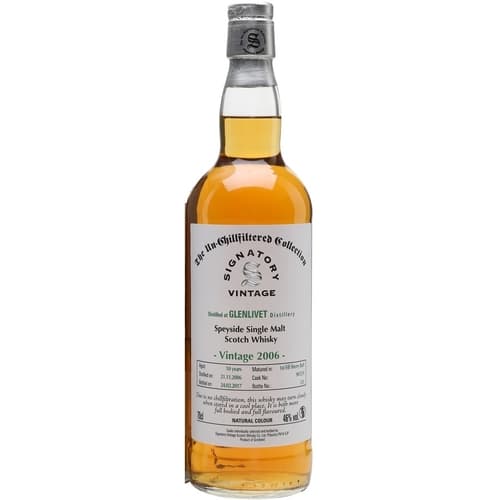 A 2006 vintage Glenlivet from independent bottler Signatory as part of the Un-Chillfiltered Collection. Distilled on 21 November it was aged in a first-fill sherry butt for 10 years until being bottled on 24 February 2017. 46% ABV