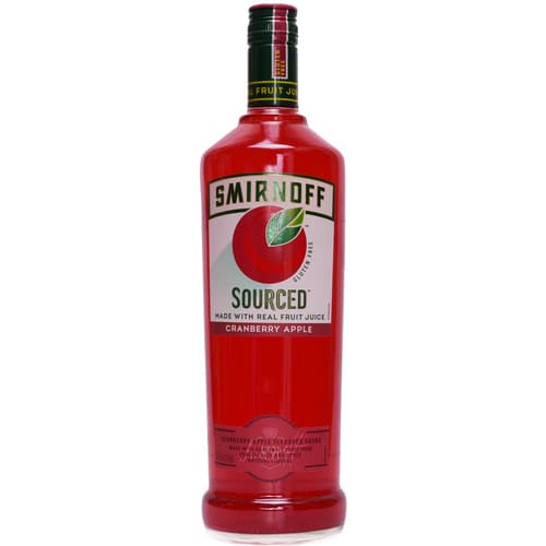 The latest innovation from Smirnoff Vodka is infused with real fruit juice bringing authenticity to an often artificially flavored category of the spirits business. Smirnoff Sourced responds to consumer demand for natural flavor choices and transparency about product ingredients. Naturally fresh and gluten free this new brand features three deliciously-sourced flavors: Ruby Red Grapefruit Pineapple and Cranberry Apple. 30% ABV Tasting Notes: Cranberry Apple: The taste of crisp apple with a touch of cranberry sweetness. -Exceptionally smooth triple distilled vodka that is filtered ten times in a unique process for supreme clarity. -Made with real fruit juice from concentrate and other natural flavors (refrigerate after opening to preserve freshness). -Contains no high-fructose corn syrup. -Gluten free
