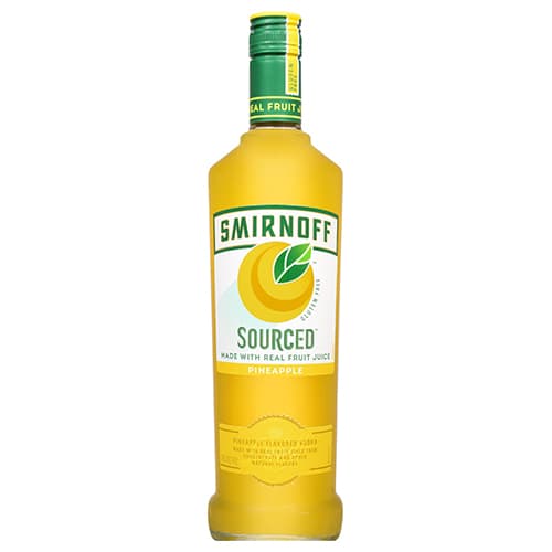 The latest innovation from Smirnoff Vodka is infused with real fruit juice bringing authenticity to an often artificially flavored category of the spirits business. Smirnoff Sourced responds to consumer demand for natural flavor choices and transparency about product ingredients. Naturally fresh and gluten free this new brand features three deliciously-sourced flavors: Ruby Red Grapefruit Pineapple and Cranberry Apple. 35% ABV Tasting Notes: Pineapple: Exceptionally juicy and vibrant flavor. -Exceptionally smooth triple distilled vodka that is filtered ten times in a unique process for supreme clarity. -Made with real fruit juice from concentrate and other natural flavors (refrigerate after opening to preserve freshness). -Contains no high-fructose corn syrup. -Gluten free