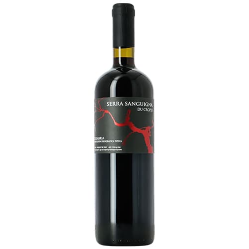 The Serra Sanguigna is generally composed of 70% Gaglioppo 15% Malvasia Nera and 15% Greco Nero. It is the most rustic wine of the estate marked by a powerful plum-infused fruit robust in weight deep ruby in color and surprisingly lithe on the palate. - Aziende Agricola Du Cropio